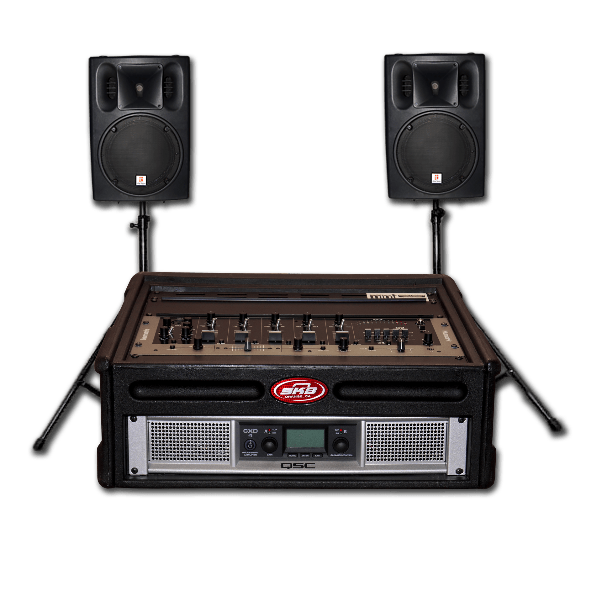 Wenn Sie bereits über einen Discjockey verfügen oder selbst einer sind, steht Ihnen hier ein einfaches aber leistungsstarkes Beschallungssystem zur Verfügung. Sie benötigen nur noch die Abspielgeräte, wie z.B. einen CD-Player, iPod/MP3-Player oder Laptop. Das Set beinhaltet zwei Lautsprecher inkl. Stative, ein 8-Kanal-Mischpult, einen Verstärker und ein Klinken-Anschlusskabel für ein Abspielgerät.
